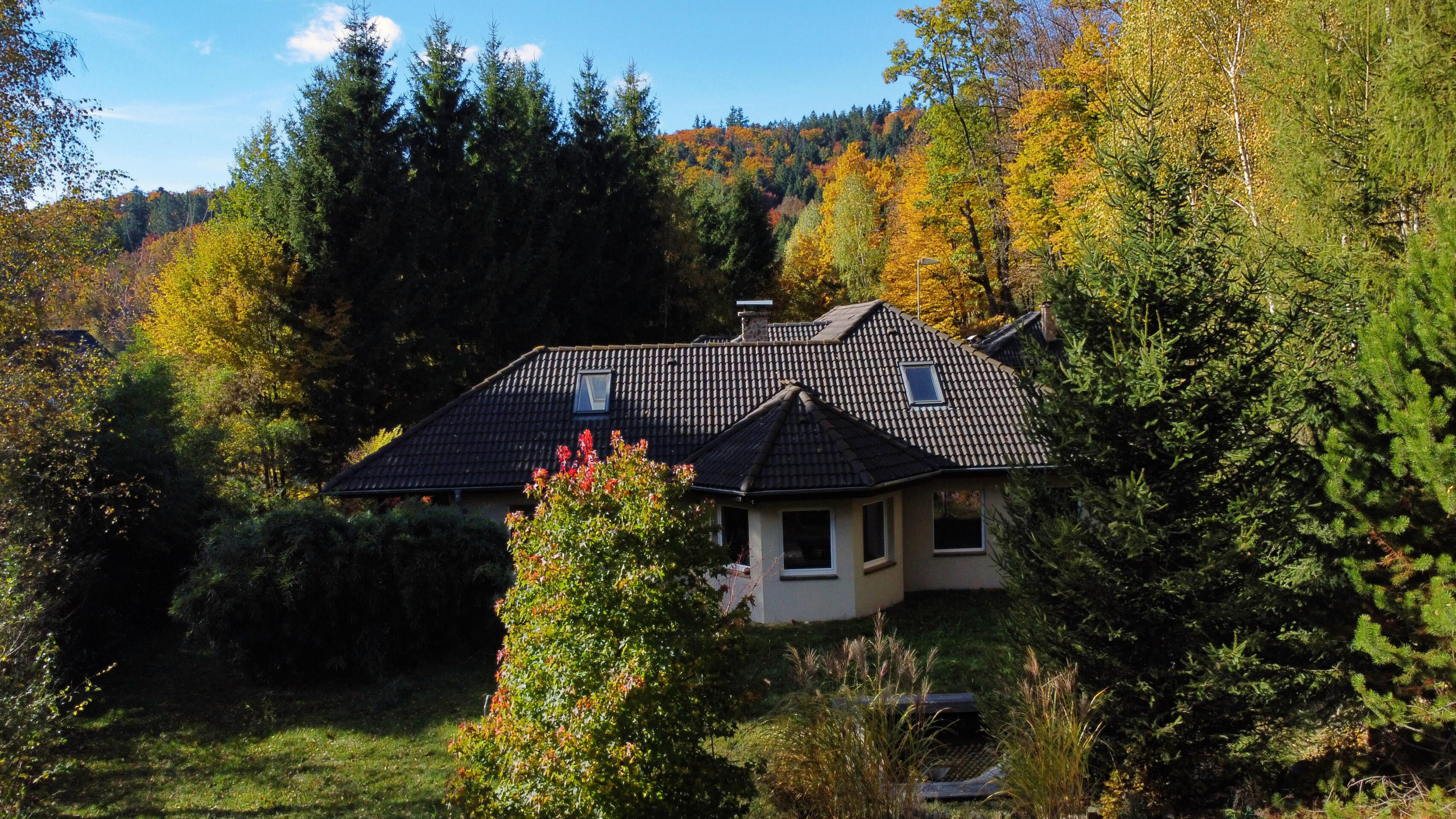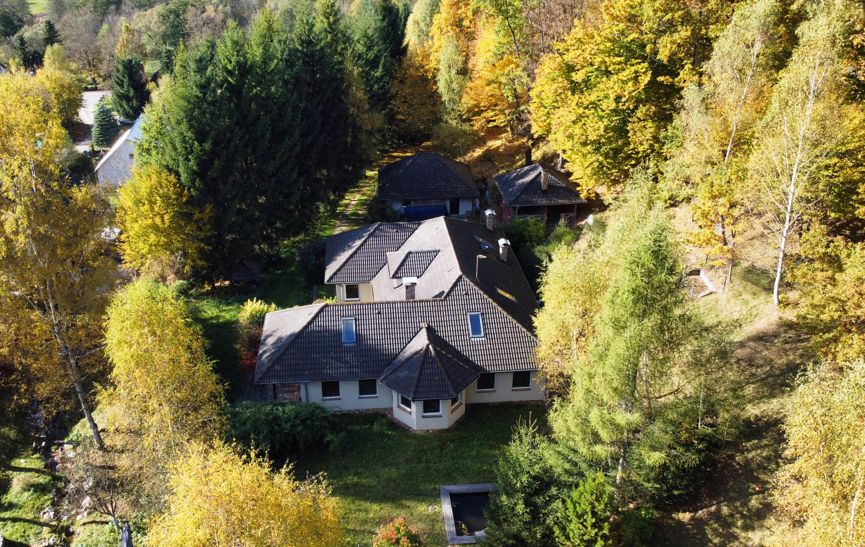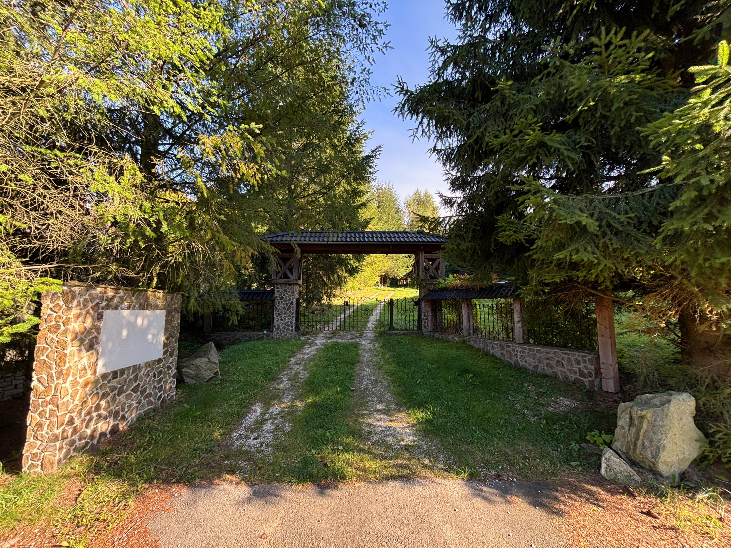 Posiadłość położona jest na dwóch działkach o łącznej powierzchni 2,15 ha.