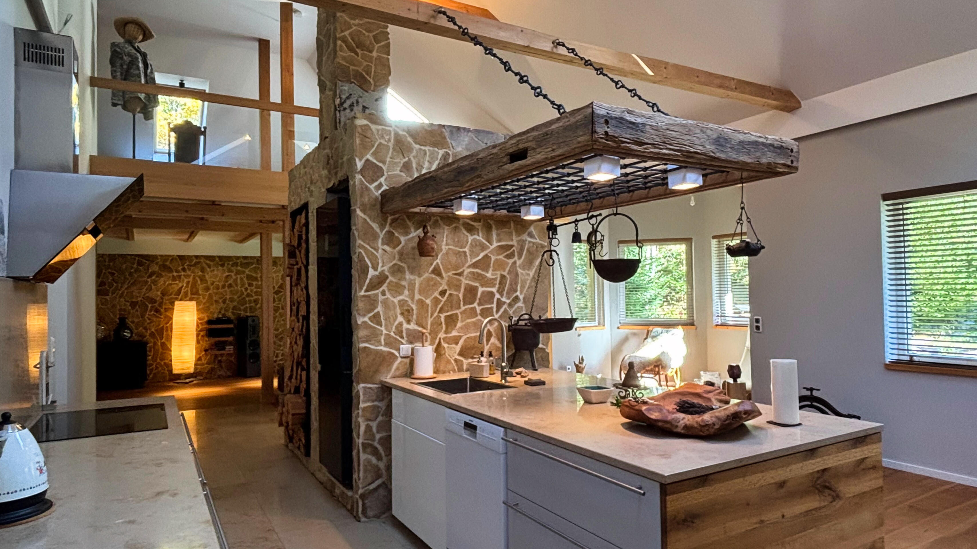1) antresola z widokiem na salon,